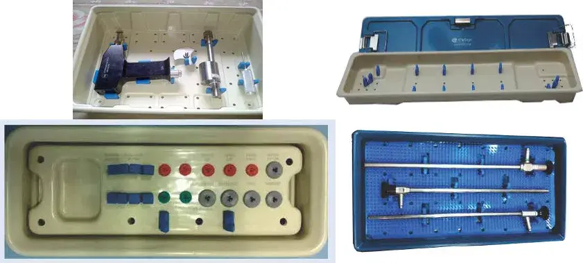 1. Sterilization trays with silicon mat & Holders to fix the instruments safely (customizable, advanced materials)